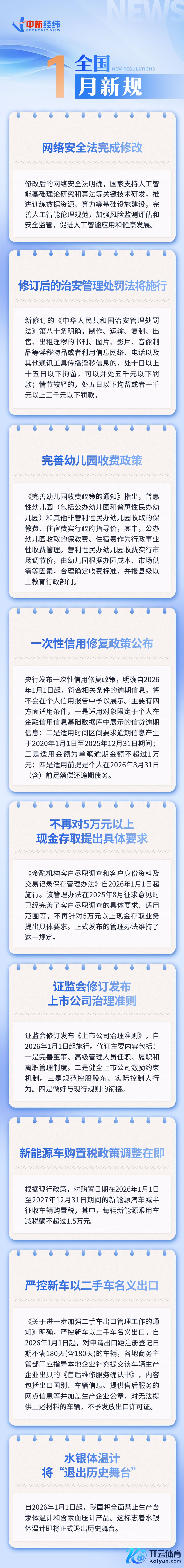 中新经纬12月31日电 (张澍楠)一大波新规将自2026年1月起实行,影响你我生计。