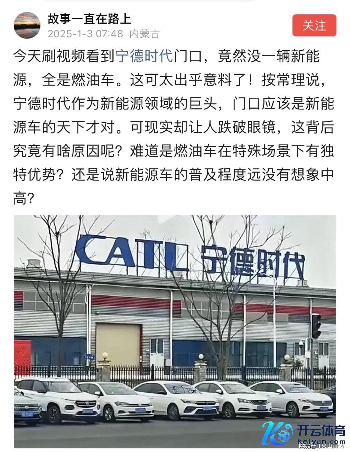 近日有网友发帖称,今天刷视频看到门口,确切没一辆新动力,全是燃油车。这可太出其不意了!按常理说,宁德期间算作新动力限制的巨头开云官网切尔西赞助商,门口应该是新动力车的六合才对。可践诺却让东说念主跌破眼镜,这背后究竟有啥原因呢?难说念是燃油车在特等场景下有独到上风?也曾说新动力车的普及进度远莫得念念象中高?