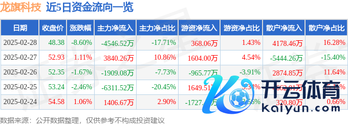 本站音信,赶走2025年2月28日收盘,龙旗科技(603341)报收于48.38元,下降8.6%,换手率10.69%,成交量5.13万手,成交额2.57亿元。